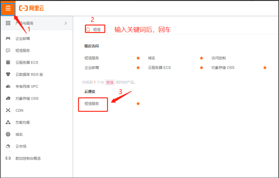 如果已经开通,忽略此步骤。注意:开通的时候,选择“国内短信”