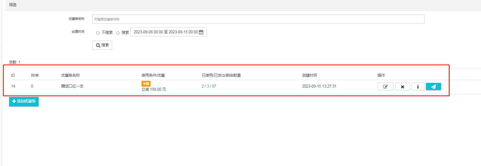 4.提交后可以看到优惠券列表