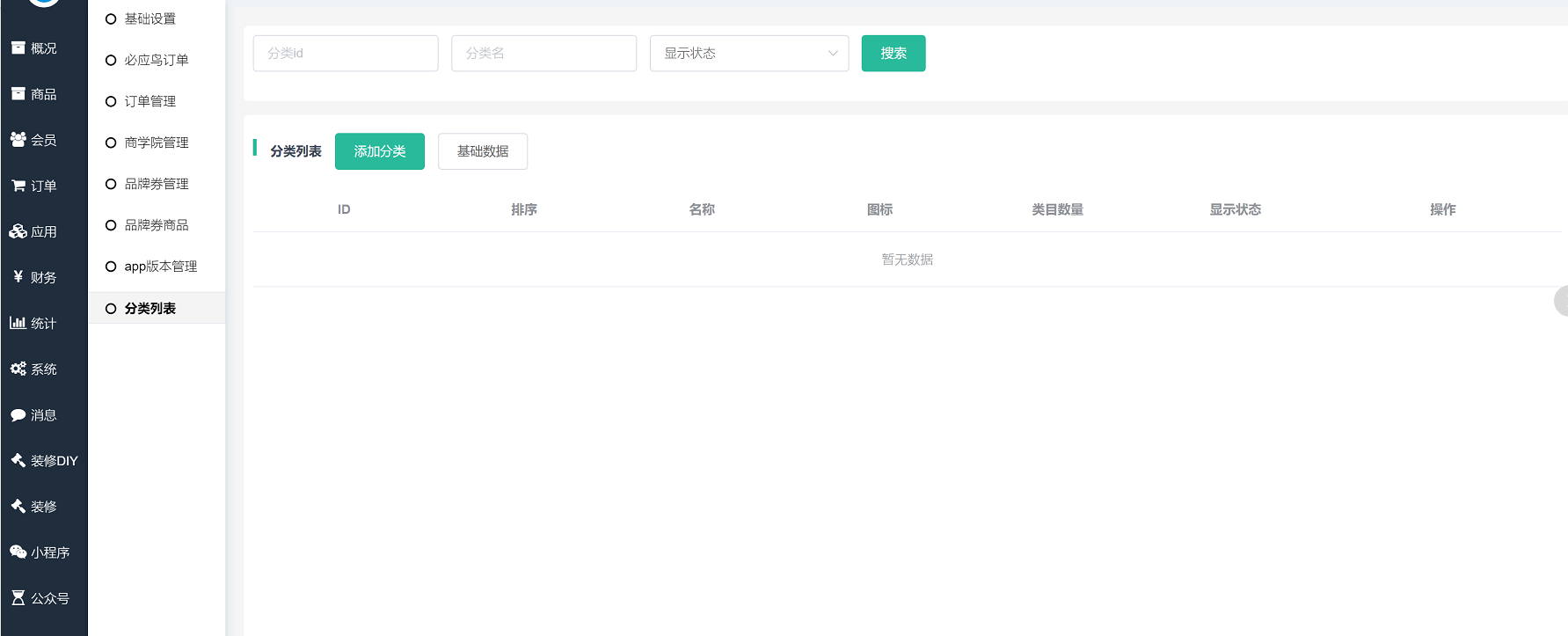 PS:如基础数据还在更新中,请勿添加新分类。