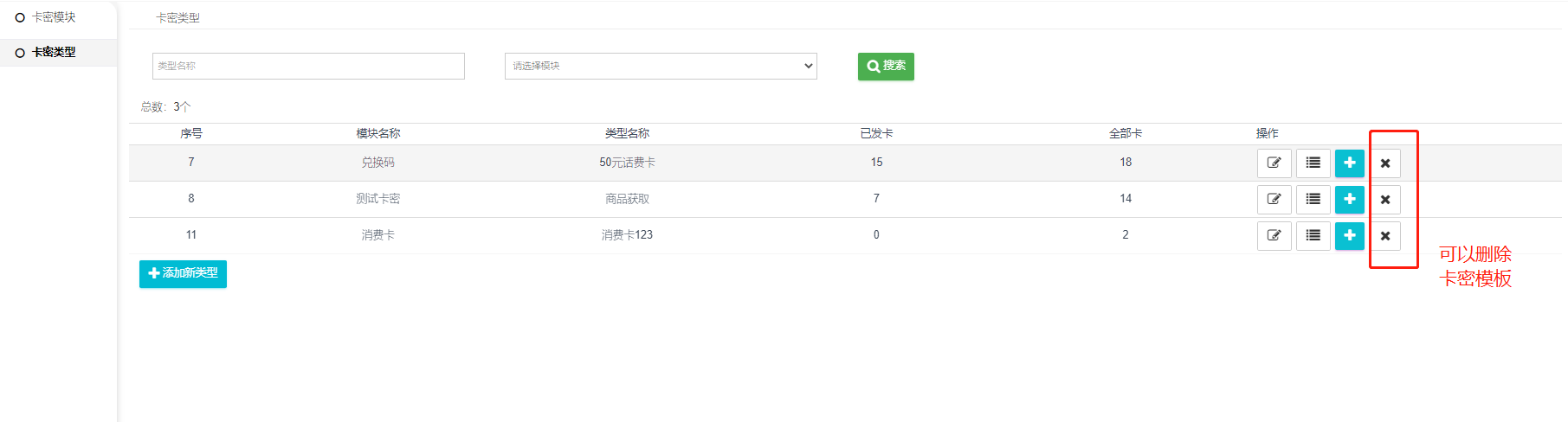 二  、添加好卡密模块,查看卡密类型列表