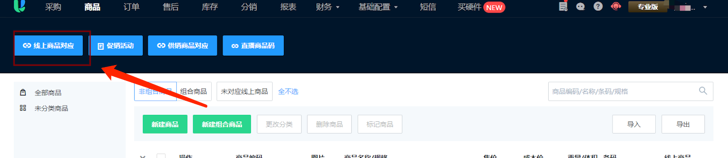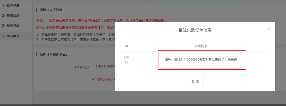 手动推送订单,提示:商品未同步无法推送