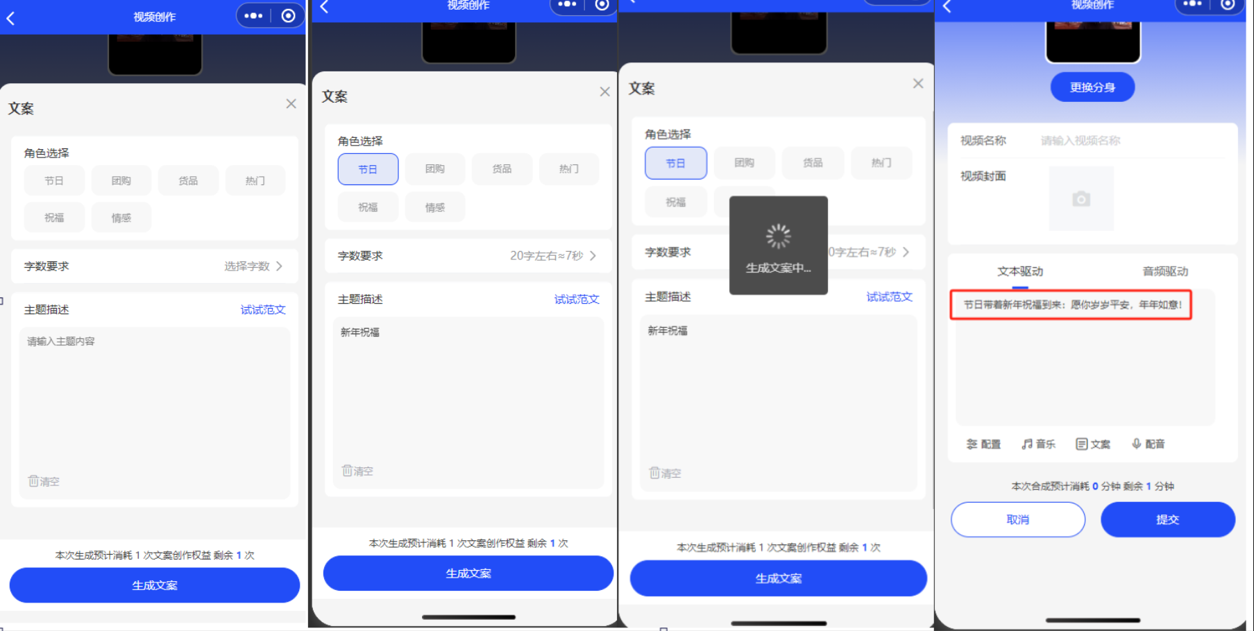 注:每创建一个文案都会消耗一个合成文案权益数量