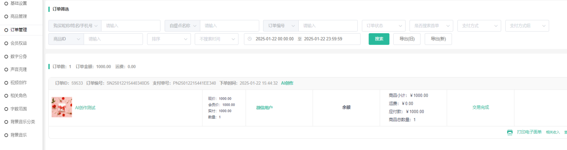 展示已创建 AI创作权益套餐自营商品